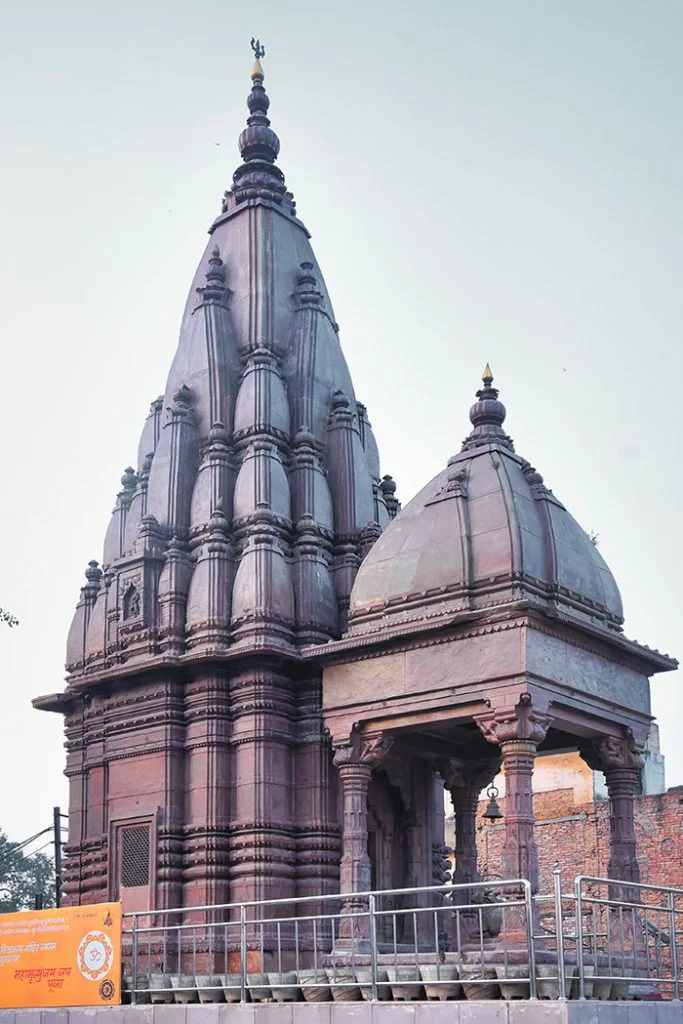 Gangeshwar Mahadev Temple is a Hindu temple dedicated to Lord Shiva as Gangeshwar Mahadev. Gangeshwar is considered to be a form of Shiva as the Lord of River Ganga. Lord Shiva and river Ganga are associated as mentioned in the Hindu scripture of Shiva Purana, Lord Shiva holds Ganga in his Jatta (matted locks of his hair) to slow down the extreme force of the river descending on earth from heaven. Thus, Lord Shiva who held river Ganga through his matted locks is known as Gangeshwar Mahadev or Gangadhar. This temple is one of the several temples recovered from Kashi Vishwanath Temple Corridor, located near Manikarnika Ghat in Varanasi. This temple is rectangular in plan and aligned east to west. The main entrance of the temple is from the east which leads directly to the mandapa